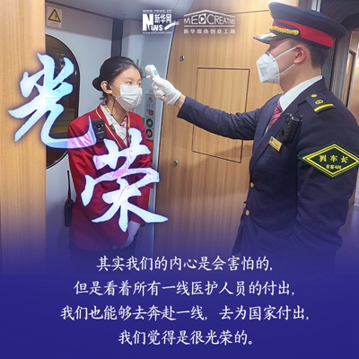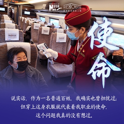 孫碩,北京客運段京廣高鐵車隊的列車長之一。進入高鐵工作8年時間,其中7次大年三十在值乘任務中度過,沒有陪伴家人。2020年春運,他值乘北京西至福田站的G71/72次復興號動車組列車,途徑石家莊,鄭州東,武漢,長沙南,廣州南等省會車站。他的母親作為醫護工作者,曾參與過非典時期的救援任務,他雖不是醫護人員,但在這個特殊時期服務于社會,依然感到榮幸。