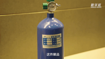 一個氧氣瓶靜靜地躺在展柜