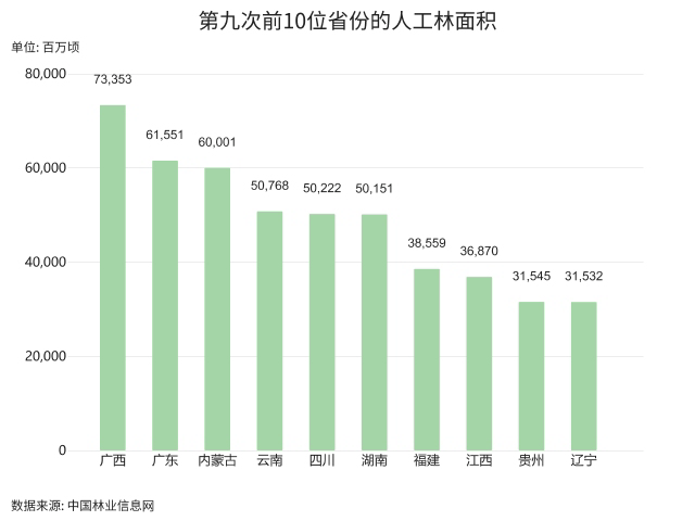 ??? 森林蓄積量是反映一個國家或地區森林資源總規模和水平的基本指標之一,也是反映森林資源的豐富程度、衡量森林生態環境優劣的重要依據。“十三五”期間,我國森林蓄積量超過175.6億立方米,森林植被碳儲量91.86億噸。
