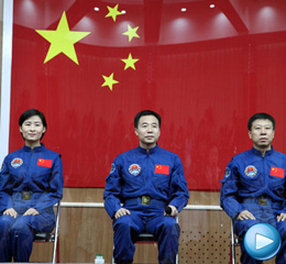 執行天宮一號與神舟九號載人交會對接任務航天員乘組與記者見面