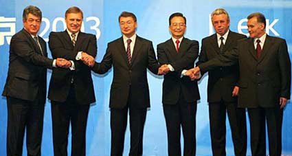 各國領(lǐng)導(dǎo)人積極評價(jià)上合組織一年來取得的成果,一致同意加大打擊“三股勢力”力度,切實(shí)維護(hù)本地區(qū)的安全與穩(wěn)定;加強(qiáng)經(jīng)濟(jì)政策協(xié)調(diào),促進(jìn)貿(mào)易投資便利化,加快實(shí)施經(jīng)濟(jì)技術(shù)合作項(xiàng)目;深化救災(zāi)、教育、文化等領(lǐng)域合作,促進(jìn)本地區(qū)可持續(xù)發(fā)展。