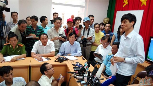 ????設在富國島的越南搜救前線指揮辦公室11日召開首次聯(lián)席會議。范貴肖主持會議并向新聞界通報越南搜救情況。