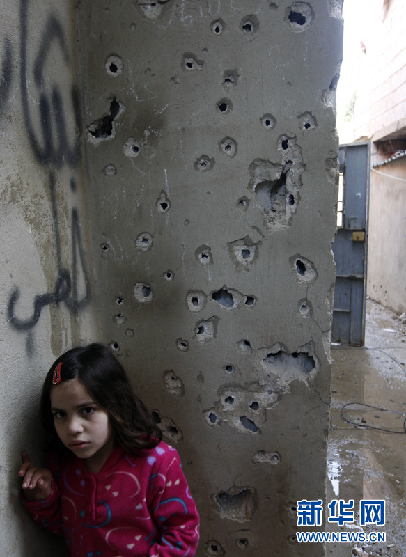 3月23日,黎巴嫩首都貝魯特槍戰現場,一黎巴嫩女童在躲避槍戰。