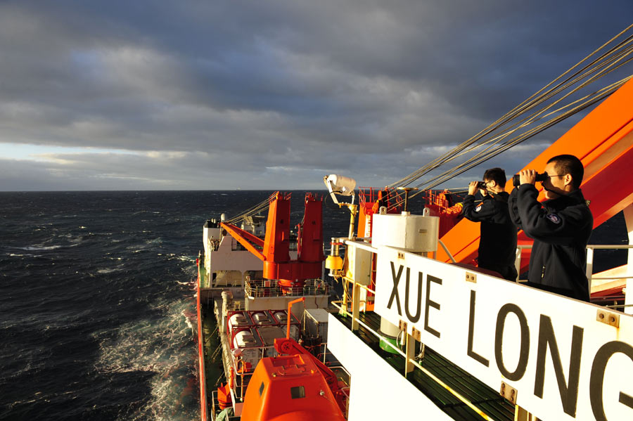 ????經中國海上搜救中心同意,“雪龍”號科考船28日下午全速趕往澳大利亞海事安全局最新調整的搜尋區,并將與“海巡01”會合,進行中方船只現場指揮聯絡工作的交接。根據國際調查團隊向澳方提出的建議,澳大利亞海事安全局28日調整了搜索部署,搜尋范圍發生較大改變。新華社記者張建松攝