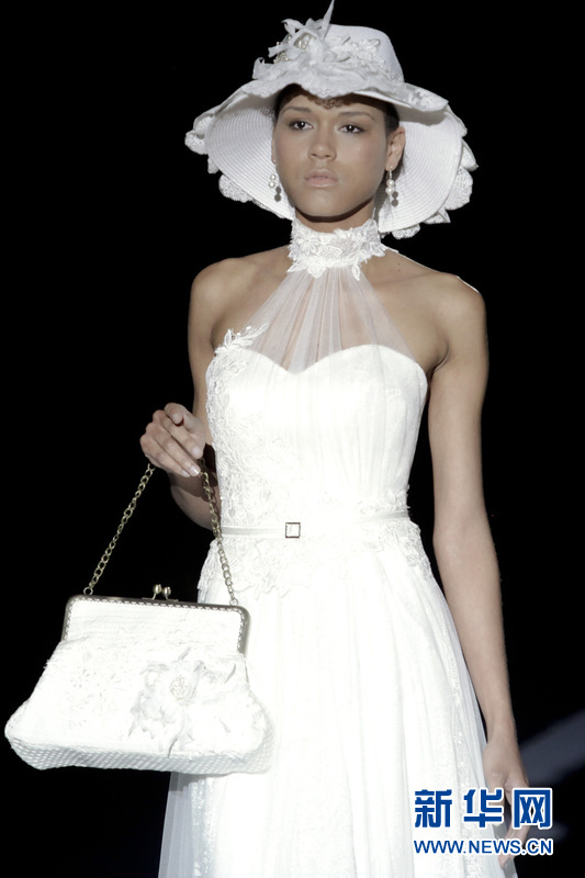 模特在T臺上展示西班牙女服裝設計師 Inmaculada Garcia的婚紗作品。Inmaculada Garcia同時也是來自巴塞羅那當地的一個婚紗品牌。
