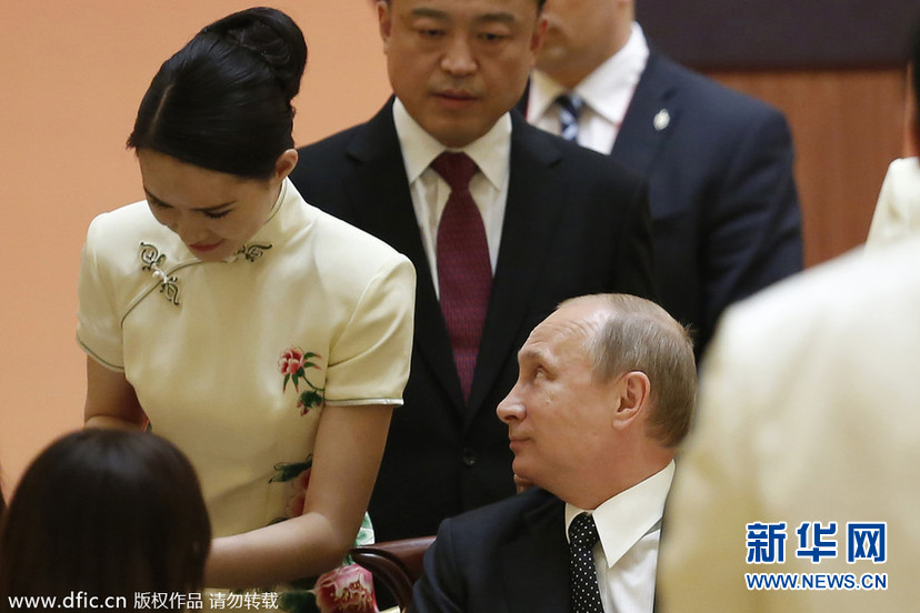 ??? 2014年5月20日,上海舉行亞洲相互協(xié)作與信任措施會議第四次峰會。俄羅斯總統(tǒng)弗拉迪米爾-普京出席2014上海亞信峰會歡迎晚宴,被美女禮儀服務(wù)小姐吸引。(圖片來源:東方IC)