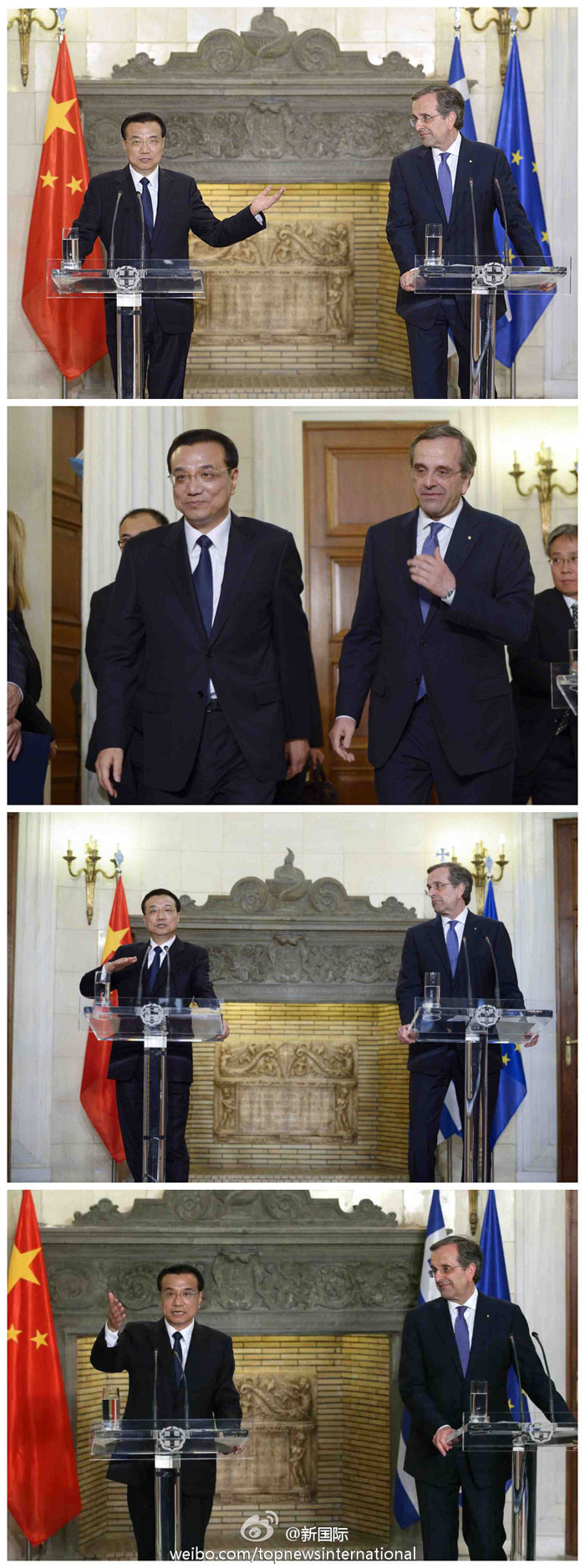 ??? 新華網北京6月20日電 據新華社“新國際”微博報道,19日,李克強與希臘總理共見記者談及中希關系時說,作為東西方文明兩大古國,都對人類文明做出過特殊貢獻。兩國人民又有著深厚情誼。希臘為中國從利比亞撤僑提供了寶貴幫助;中國為希臘克服主權債務危機及時施以援手。中希兩國關系義字當頭、互利雙贏。