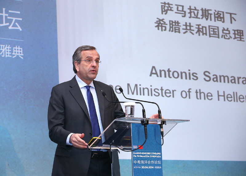 ??? 希臘總理薩馬拉斯20日在中希海洋合作論壇上說(shuō),李克強(qiáng)總理是我的朋友。我們彼此可以直視對(duì)方眼睛,因?yàn)槲覀兿嗷バ湃危@種個(gè)人信任也代表了希臘人民對(duì)中國(guó)人民的感情。我們不會(huì)忘記,中國(guó)在希臘債務(wù)危機(jī)最困難時(shí)期無(wú)私地跟我們站在一起。