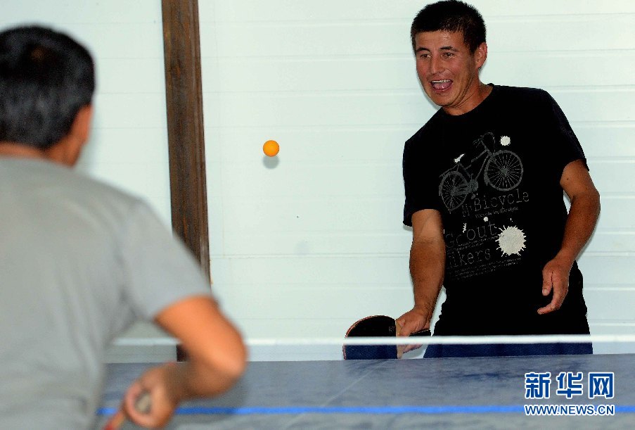 ????7月5日,烏茲別克斯坦安革連至琶布鐵路隧道項(xiàng)目安革連隧道進(jìn)口西口分部,烏茲別克員工在打乒乓球。(沙達(dá)提 攝)
