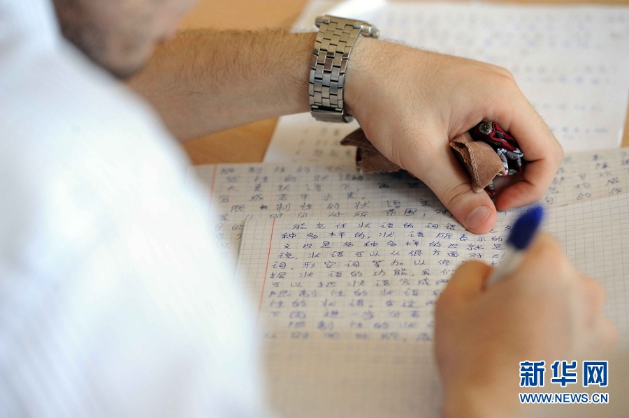 ??? 6月25日,烏茲別克斯坦首都塔什干,烏國立世界語言大學教室,70歲的董富華在向三年級學生上漢語課。新華網記者 沙達提攝。