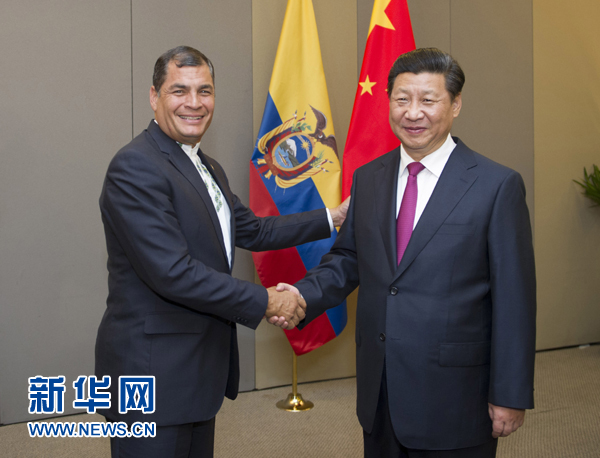 ??? 7月16日,國家主席習近平在巴西利亞會見厄瓜多爾總統科雷亞。新華社記者謝環馳攝
