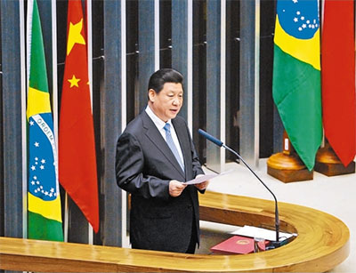當?shù)貢r間7月16日,國家主席習近平在巴西國會發(fā)表演講。新華社記者 劉建生攝
