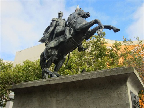 舊金山市政廳邊上有著玻利瓦爾(Simon Bolivar)的巍峨雕像