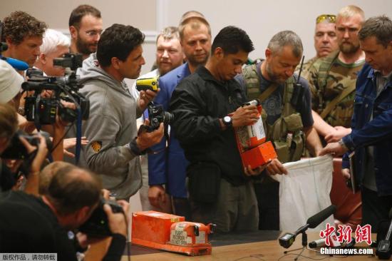 當?shù)貢r間2014年7月22日,頓涅茨克,“頓涅茨克人民共和國”官員向馬來西亞調(diào)查人員移交馬航MH17航班客機黑匣子。