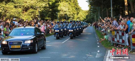 資料圖:7月23日,首批2架運載馬航MH17遇難者遺體的軍用飛機抵達荷蘭南部城市埃因霍溫。當天荷蘭國王威廉·亞歷山大、王后馬克西瑪、荷蘭首相呂特以及其他國家代表和遇難者家屬前往機場接機。荷蘭政府宣布23日為全國哀悼日,追悼馬航MH17航班事故中的荷蘭罹難者。所有荷蘭政府大樓降半旗致哀。