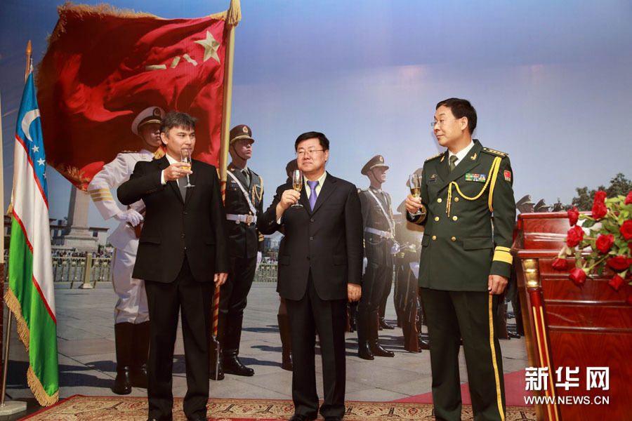 7月31日,中國駐烏茲別克斯坦大使館以孫立杰大使和黃天昌武官名義在塔什干米蘭賓館隆重舉行“八一”軍節招待會(新華社發 記者沙達提)