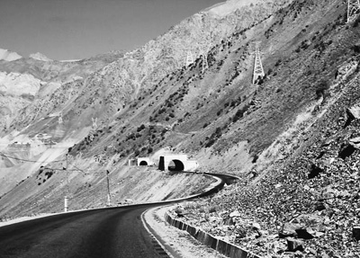 連接塔吉克斯坦南部和北部的塔烏公路是利用上合組織框架內中國政府提供的優惠信貸修復的。圖為塔烏公路一段。本報記者 黃文帝攝