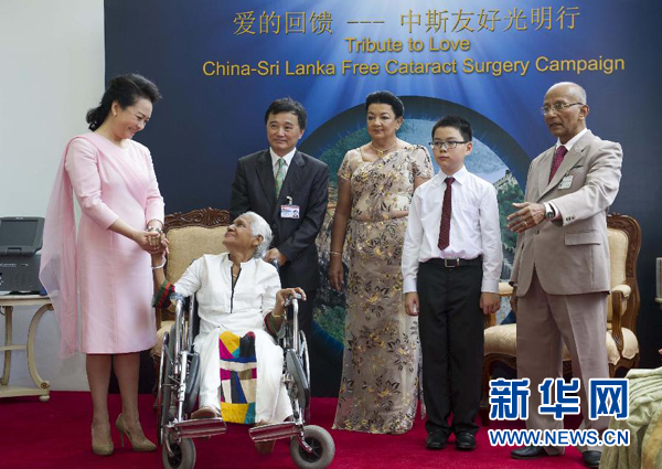 ????新華網(wǎng)科倫坡9月17日電(記者李斌)17日上午,習(xí)近平主席夫人彭麗媛和斯里蘭卡總統(tǒng)夫人施蘭蒂共同出席了“愛的回饋-中斯友好光明行”活動。