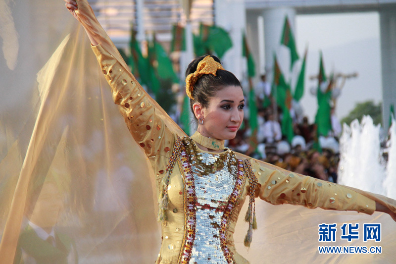 身著節日盛裝的土庫曼斯坦美女在跳舞? 記者 盧敬利攝