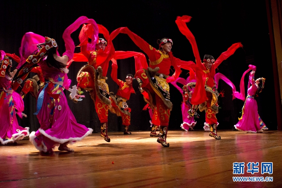 來自中南民族大學(xué)的演員在臺上表演。新華網(wǎng)發(fā) Xesco攝