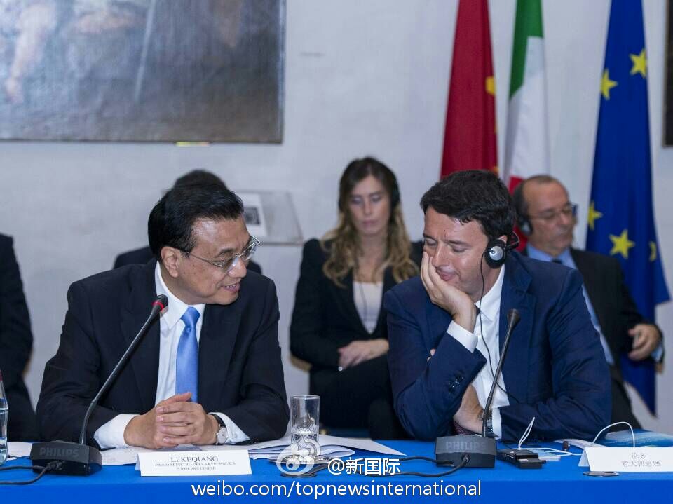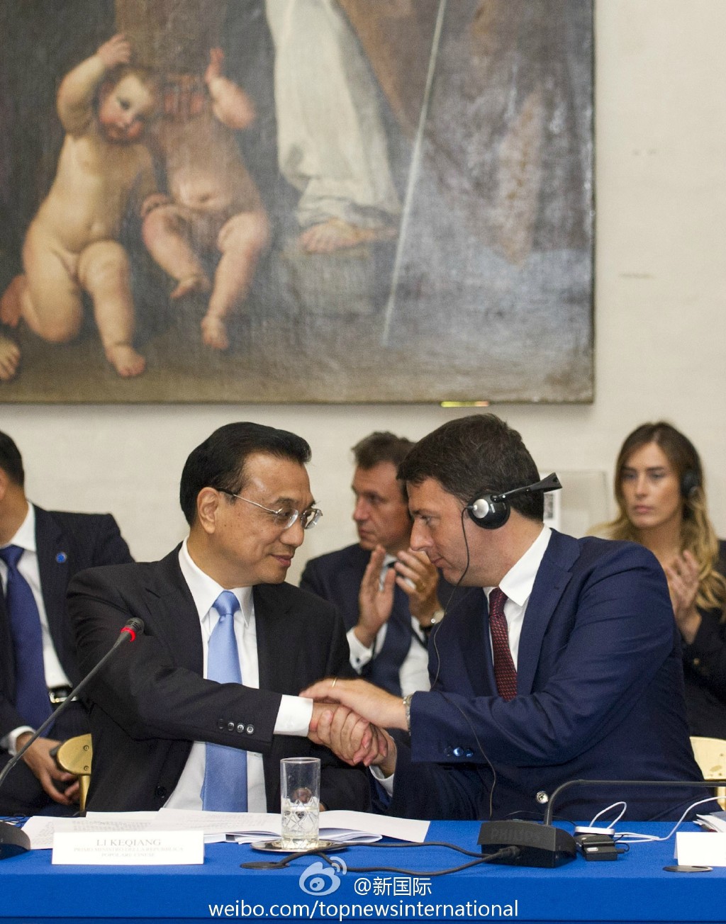 ????新華網北京10月15日電 據新華社“新國際”微博報道,中意兩國總理14日在羅馬共見兩國企業家代表,李克強說,企業界是推動兩國合作的主體和生力軍。當前中意都進入了依靠創新驅動的時代,這不僅需要科技創新,而且需要人文精神。希望兩國企業家爭做現代馬可·波羅,發揮互補優勢,推動企業間合作邁上創新的路程。