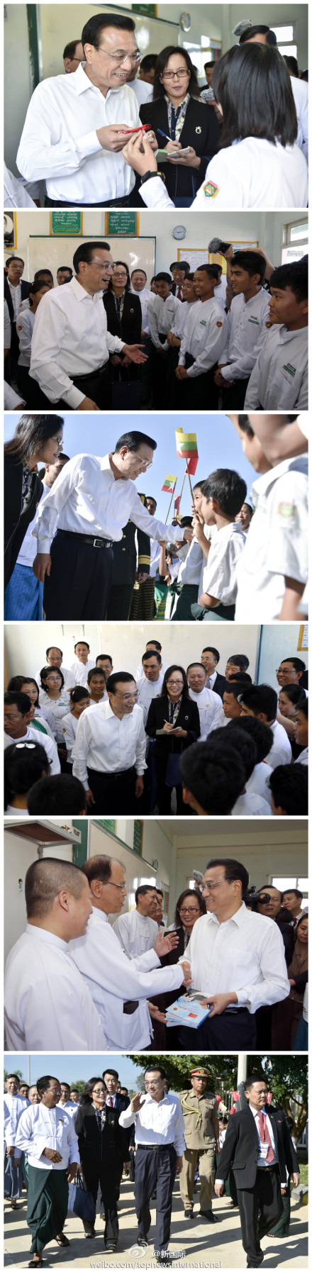 ??? 新華網(wǎng)北京11月14日電 據(jù)新華社“新國際”微博報道,李克強(qiáng)總理14日在內(nèi)比都第十四中學(xué)與緬甸青少年交流時,勉勵他們更好地傳承中緬“胞波”友誼,讓中緬友好事業(yè)后繼有人。李克強(qiáng)說,中國政府明年將邀請100名緬甸青年赴中國訪問,還將增加對緬甸政府獎學(xué)金名額,給緬甸學(xué)生赴華留學(xué)創(chuàng)造更多機(jī)會。