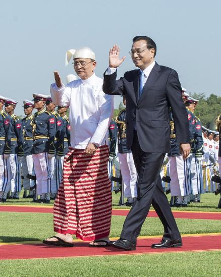 11月14日,緬甸總統吳登盛為李克強總理舉行隆重歡迎儀式。