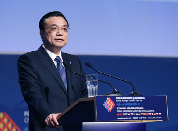 ????圖為2013年11月26日,國務院總理李克強出席第三屆中國—中東歐國家經(jīng)貿(mào)論壇并致辭。當天,李克強在布加勒斯特與羅馬尼亞等13個中東歐國家總理共同出席第三屆中國—中東歐國家經(jīng)貿(mào)論壇并致辭。 新華社記者姚大偉攝