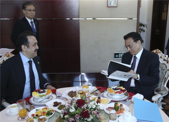 ????新華網北京12月16日電 據新華社“新華國際”客戶端報道,“一日之計在于晨”。克強總理15日的緊張日程從一頓早飯開始。天剛蒙蒙亮,哈薩克斯坦總理馬西莫夫就來到克強總理下榻的酒店——北京大廈,邀請克強總理一起吃早餐。