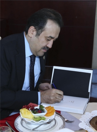 (馬西莫夫總理在自己的書上簽上名字,攝影記者:龐興雷)