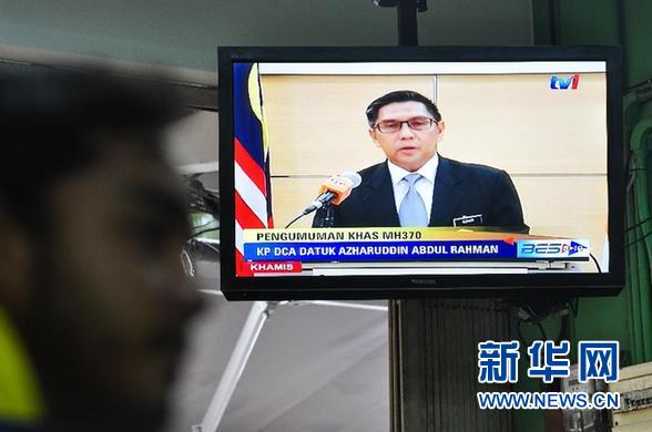 ????1月29日,在馬來西亞吉隆坡,電視直播馬來西亞民航局局長愛茲哈爾丁發表聲明。馬來西亞民航局當日宣布,馬來西亞航空公司MH370航班失事,推定機上全部239名乘客及機組成員已遇難。 新華社發(張紋綜攝)