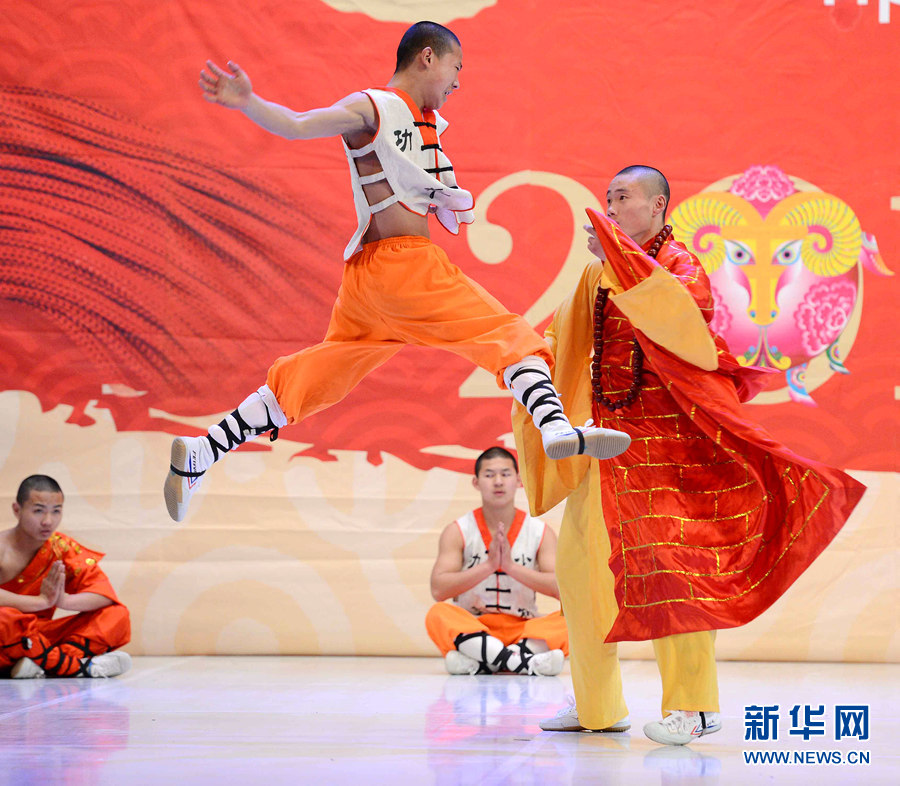 2月4日晚,在烏茲別克斯坦首都塔什干突厥宮,藝術(shù)家在表演中國武術(shù)和舞蹈。新華網(wǎng)記者 沙達提 攝