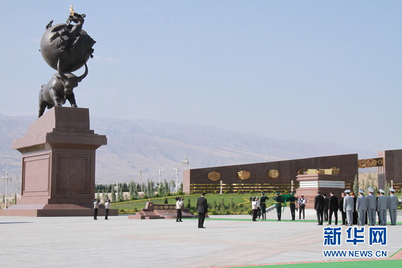 土庫曼斯坦總統和內閣成員向地震紀念碑獻花。(新華網記者 盧敬利 攝)
