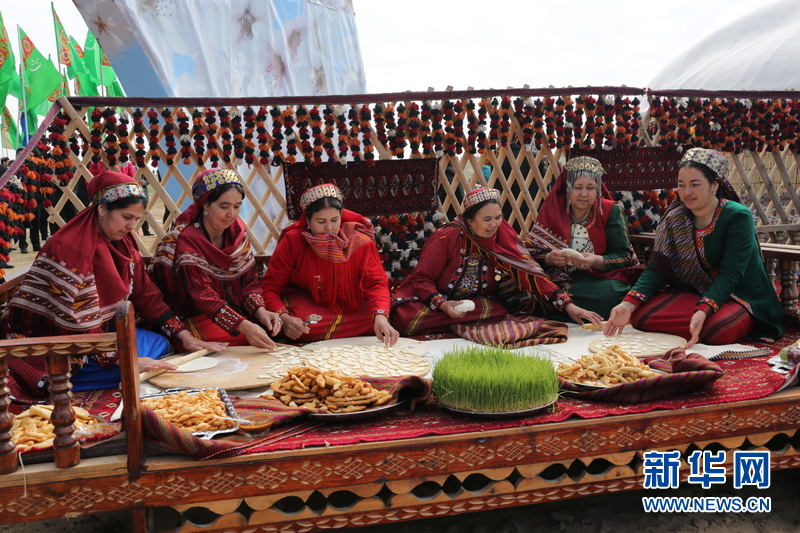 ????以往過著游牧和半游牧生活的人們在冰雪消融、牲畜產(chǎn)仔的時節(jié),都會以這一傳統(tǒng)佳節(jié)歡慶新生活。 21日上午,在阿什哈巴德以東40來公里處專門為節(jié)日搭建的場地上,土庫曼斯坦內閣、外交使節(jié)、民眾和學生參加了隆重的慶祝活動。活動中,青年男女、學齡前兒童載歌載舞,民眾和藝術家展示傳統(tǒng)的編織和手工藝術,青年男女高高地蕩起秋千,汗血寶馬進行馬技表演,土庫曼咬狼犬、羊群和駱駝或圍在欄子里,或被主人牽在手中,展現(xiàn)出游牧民族的生活景象。