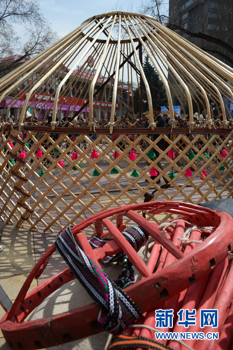 ????4月4日、5日,在阿拉木圖舉辦首界氈房節。穿著民族服裝的民間藝人搭起具有悠久傳統的哈薩克氈房。氈房上部為穹形,下部為圓柱形,四壁有網狀的木桿搭成整個氈房的骨架,外包白氈。氈房里四周是掛毯,地上是花氈地毯,上面刺著各種圖案,令人賞心悅目。哈薩克斯坦舉辦這次活動是為了將哈薩克氈房列入世界非物質文化遺產名錄。(文/盧敬利 圖/葉蓮娜)