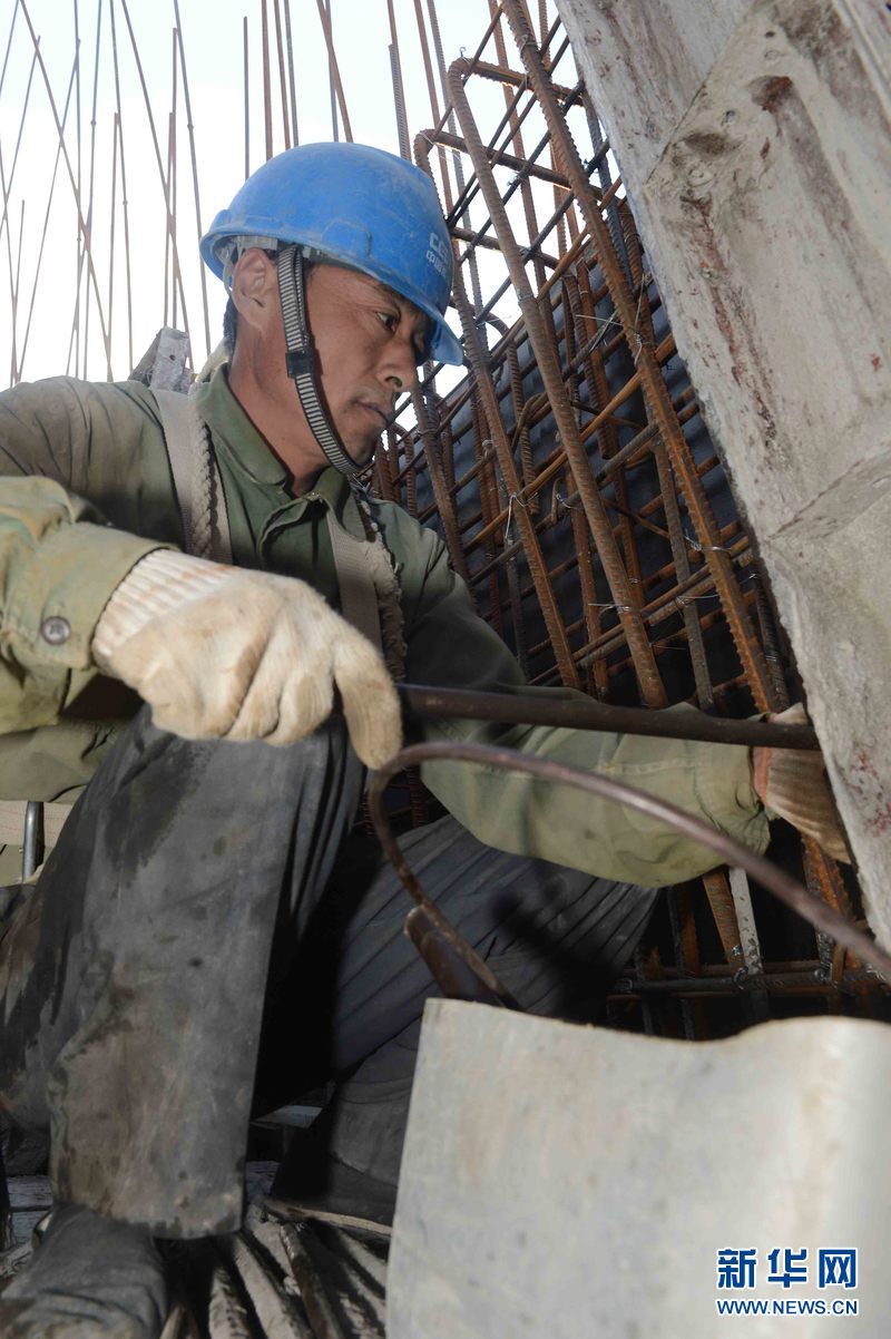 4月16日,烏茲別克斯坦安格連(市)電廠主廠房鋼結構施工現場。新華網發 記者沙達提 攝