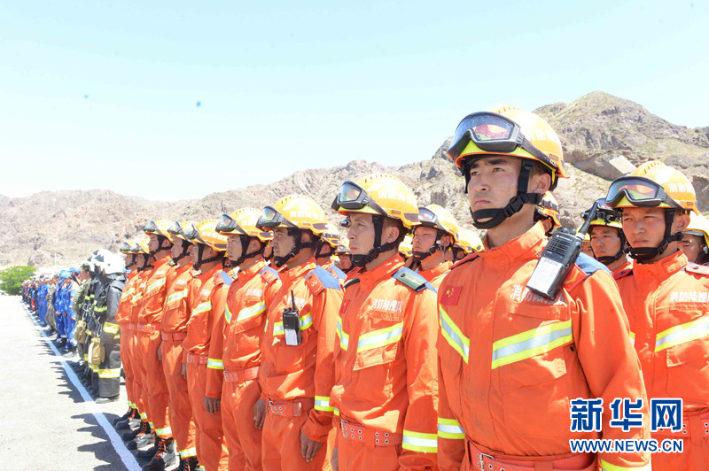 6月3日,代表中國參加上合組織國際救援聯(lián)合演練的新疆消防總隊隊員在哈薩克斯坦阿拉木圖州塔姆卡壘塔斯景區(qū)的哈內(nèi)務(wù)部緊急情況委員會教練基地“巖石城-阿斯塔納”參加演練。新華社記者沙達(dá)提攝