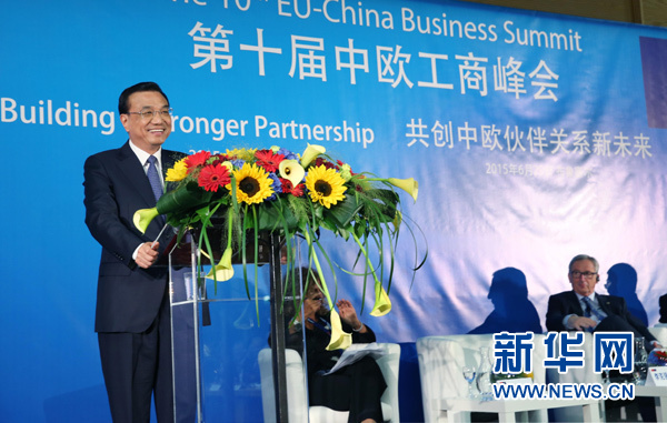 當(dāng)?shù)貢r(shí)間6月29日,國務(wù)院總理李克強(qiáng)在布魯塞爾與歐盟委員會(huì)主席容克共同出席中歐工商峰會(huì),并發(fā)表主旨演講。新華社記者 姚大偉攝