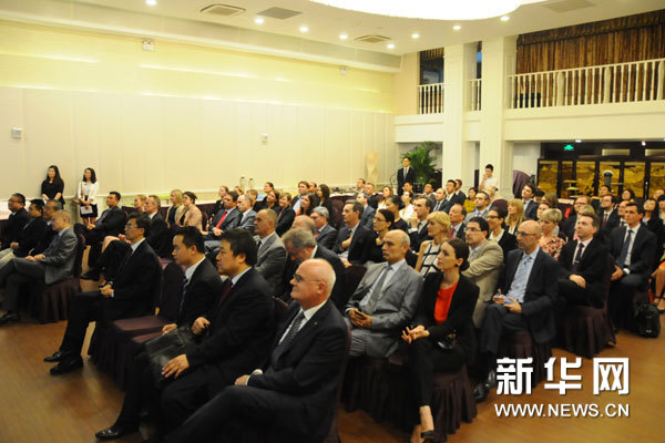 ??? 7月16日,第十屆歐洲外交官研討班開(kāi)班儀式暨《中國(guó)歐盟建交40周年》紀(jì)念畫(huà)冊(cè)發(fā)行儀式在京舉行,共有31位來(lái)自歐洲各國(guó)及歐盟機(jī)構(gòu)的駐華使節(jié)出席研討班開(kāi)班儀式。 新華網(wǎng)記者 張藝 攝