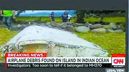 ????本報訊 據美國有線電視新聞網(CNN)報道,當地時間29日上午,在印度洋法屬留尼汪島海域發現了神秘飛機殘骸,疑似去年失事的馬航MH370客機部件。與此同時,據稱附近海域還漂有多個殘骸碎片。另據法新社消息,法國航空官員已開始著手調查,據稱,殘骸大約有2米長,似乎是飛機機翼的一部分,與波音777客機零件十分相似。而MH370航班正是波音777機型。截至發稿時,調查結果仍未公布。