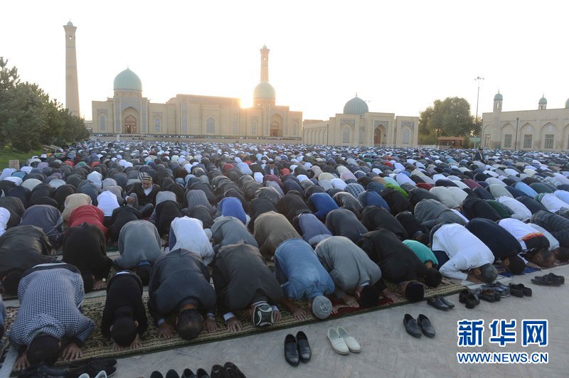 ?。乖拢玻慈?,在烏茲別克斯坦首都塔什干哈斯特·伊瑪姆建筑群清真寺廣場,人們參加古爾邦節禮拜。當天,烏茲別克斯坦各地慶祝伊斯蘭教傳統節日古爾邦節。“古爾邦節”亦稱“宰牲節”,是伊斯蘭教三大節日之一。 新華社記者沙達提 攝
