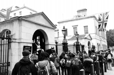10月16日,在英國(guó)倫敦皇家騎兵衛(wèi)隊(duì)檢閱場(chǎng),正門外已掛出大幅中英兩國(guó)國(guó)旗,往來游人與身穿傳統(tǒng)制服的衛(wèi)隊(duì)哨兵合影留念。20日,為前來英國(guó)進(jìn)行國(guó)事訪問的習(xí)近平主席舉行的歡迎儀式將在這里進(jìn)行。現(xiàn)場(chǎng)將鳴放21響禮炮,女王伊麗莎白二世與其丈夫愛丁堡公爵菲利普親王將陪同習(xí)近平主席檢閱英國(guó)皇家儀仗隊(duì)。隨后,女王夫婦將陪同習(xí)近平主席夫婦從這里乘坐皇家馬車前往白金漢宮,并共進(jìn)午宴。 本報(bào)駐倫敦記者 戴軍攝