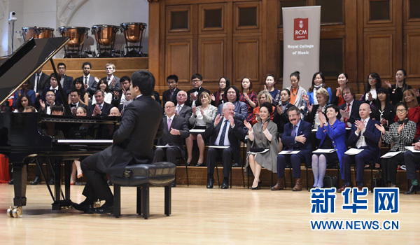 彭麗媛抵達時,受到皇家音樂學院董事會主席溫斯頓勛爵、學院院長、英國友人等熱烈歡迎。在院長陪同下,彭麗媛欣賞了獲獎學生和校友精彩的聲樂、器樂表演,參觀了樂器博物館,觀賞了圖書館珍藏的莫扎特、肖邦等音樂大師創作手稿,并同學院師生進行交流。彭麗媛表示,音樂作為一種高尚的藝術形式,超越國家、民族、歷史、文化界限。皇家音樂學院培養出眾多世界級藝術家。中國有不少音樂作品享譽世界,希望皇家音樂學院今后加強同中國音樂院校的交流,為促進中英教育和藝術合作貢獻力量。