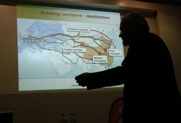 ↑與會者演講歐亞大陸如何互聯互通。