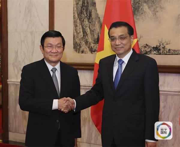 2013年6月20日,國務院總理李克強在北京釣魚臺國賓館會見越南國家主席張晉創。