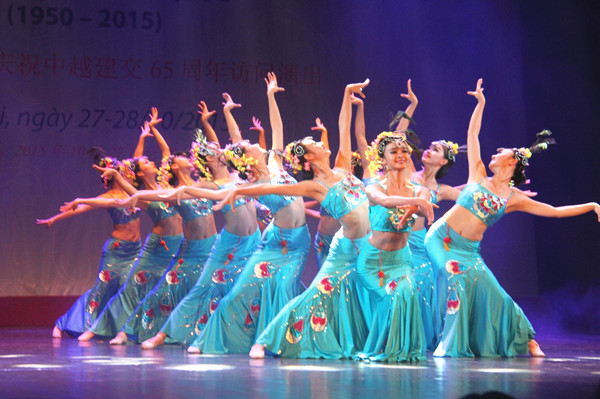 2015年10月27日,中國云南省藝術團在越南首都河內表演傣族舞蹈《美的祝福》,慶祝中越建交65周年。