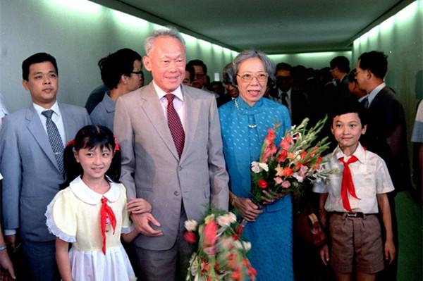 1985年9月13日至25日,應(yīng)中國(guó)政府邀請(qǐng),新加坡總理李光耀和夫人對(duì)中國(guó)進(jìn)行了正式友好訪問(wèn)。圖為9月13日,李光耀總理和夫人乘飛機(jī)到達(dá)上海時(shí),上海少先隊(duì)員向新加坡貴賓獻(xiàn)花。