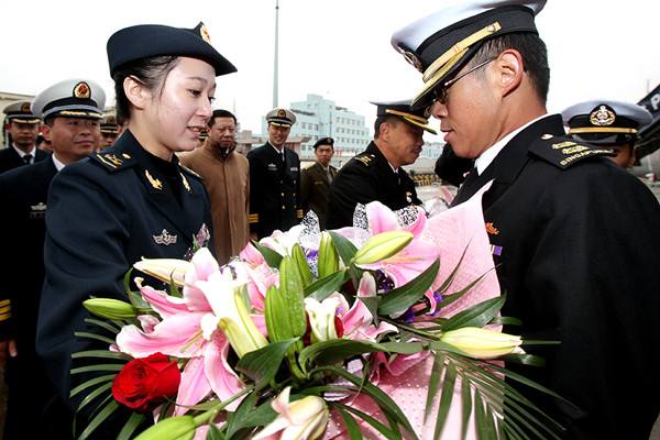 圖為中國(guó)海軍女兵向來(lái)訪的新加坡海軍軍官獻(xiàn)花。2010年3月8日,新加坡海軍登陸艦首訪上海。 當(dāng)日,新加坡海軍“堅(jiān)持”號(hào)登陸艦在艦長(zhǎng)李順達(dá)海軍中校率領(lǐng)下駛抵上海,開始對(duì)上海進(jìn)行為期5天的友好訪問(wèn)。這是“堅(jiān)持”號(hào)第一次訪問(wèn)上海。