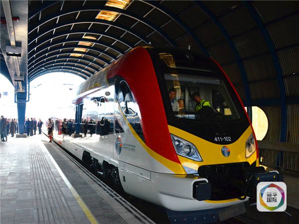 新華國際客戶端報道,上月底,中國首列出口歐洲的動車組運抵斯科普里,流線型的車身、雅致的內(nèi)飾,讓當?shù)厥忻駹幭嘤^摩這一漂洋過海而來的高品質(zhì)“中國制造”。