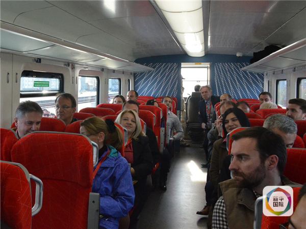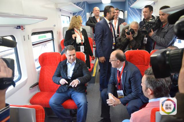 圖為馬其頓總理格魯埃夫斯基(左一)乘坐動車。新華社發(fā)